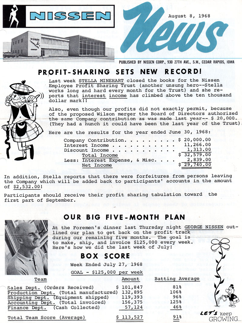 1968 (Aug 8) Profit-Sharing Sets New Record & Nissen Employee Profile: Ida Mae "Pat" Coss